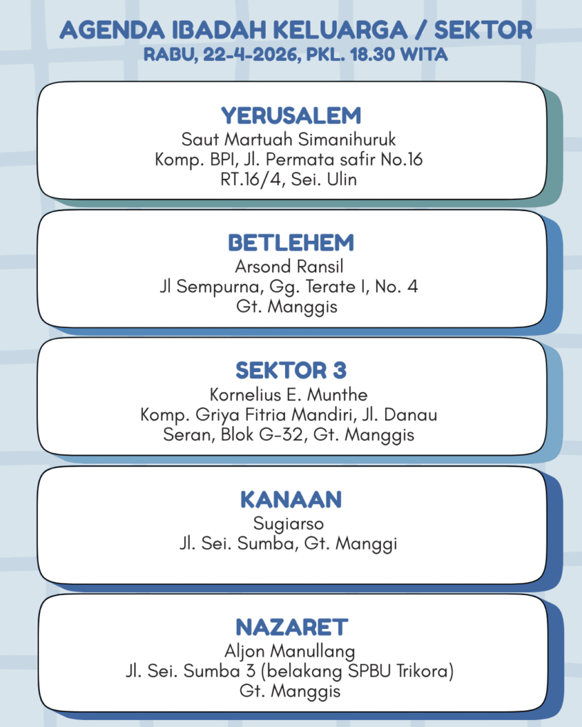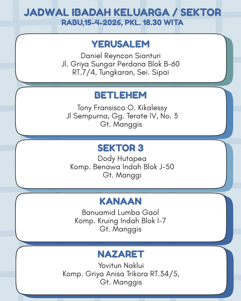 Warta Minggu Ini Warta Baca PDF Minggu Ini ARSIP WARTA Agenda Kegiatan IBADAH ONLINE INTISARI WARTA JEMAAT PROFIL BERITA TERBARU WARTA JEMAAT TATA IBADAH INFO PELKAT BERITA KELUARGA JADWAL IBADAH IBADAH ONLINE Post Views: 80